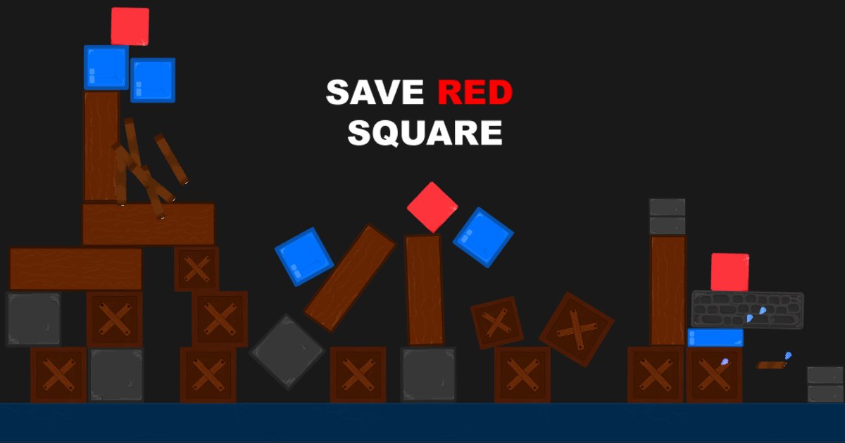 Destroy all blocks (wood, glass) and save RED cube on the platform