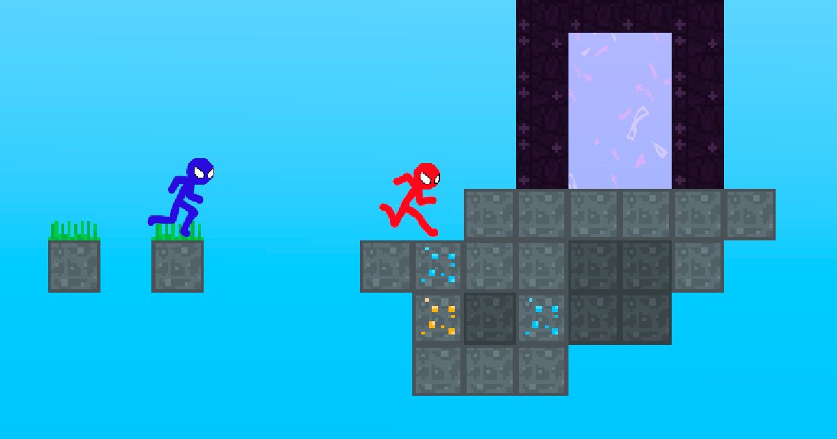 stickman guys need to survive in the world of blocks two brothers stikmans have to go to the portal and get rid of them. help them and run to the portal. You have to be careful before jumping from the portal, be careful of falling off the cliff and disappearing floors, they are not the only one, there are many obstacles, after all, be careful on the moving floors.